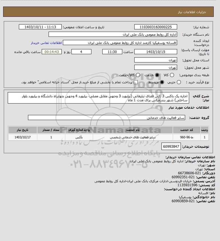 نام دستگاه خریدار:اداره کل روابط عمومی بانک ملی ایران