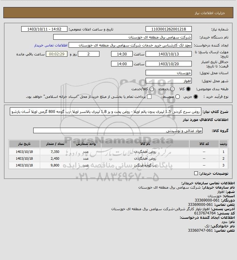 نام سازمان خریدار: شرکت سهامی برق منطقه ای خوزستان