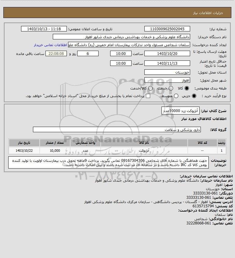 نام سازمان خریدار: دانشگاه علوم پزشکی و خدمات بهداشتی درمانی جندی شاپور اهواز