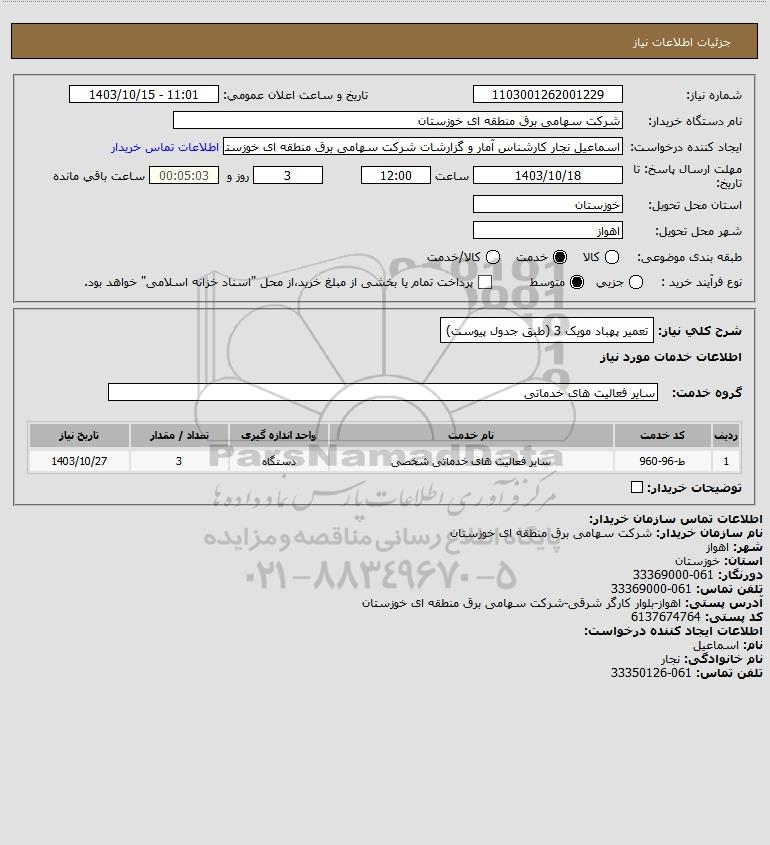 نام سازمان خریدار: شرکت سهامی برق منطقه ای خوزستان