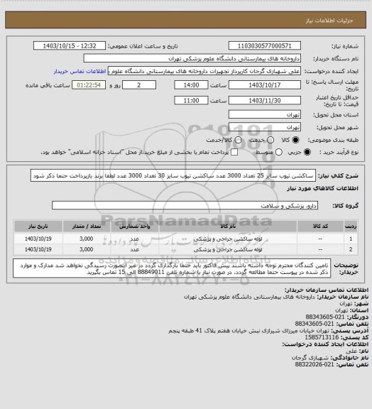 نام دستگاه خریدار:داروخانه های بیمارستانی دانشگاه علوم پزشکی تهران
