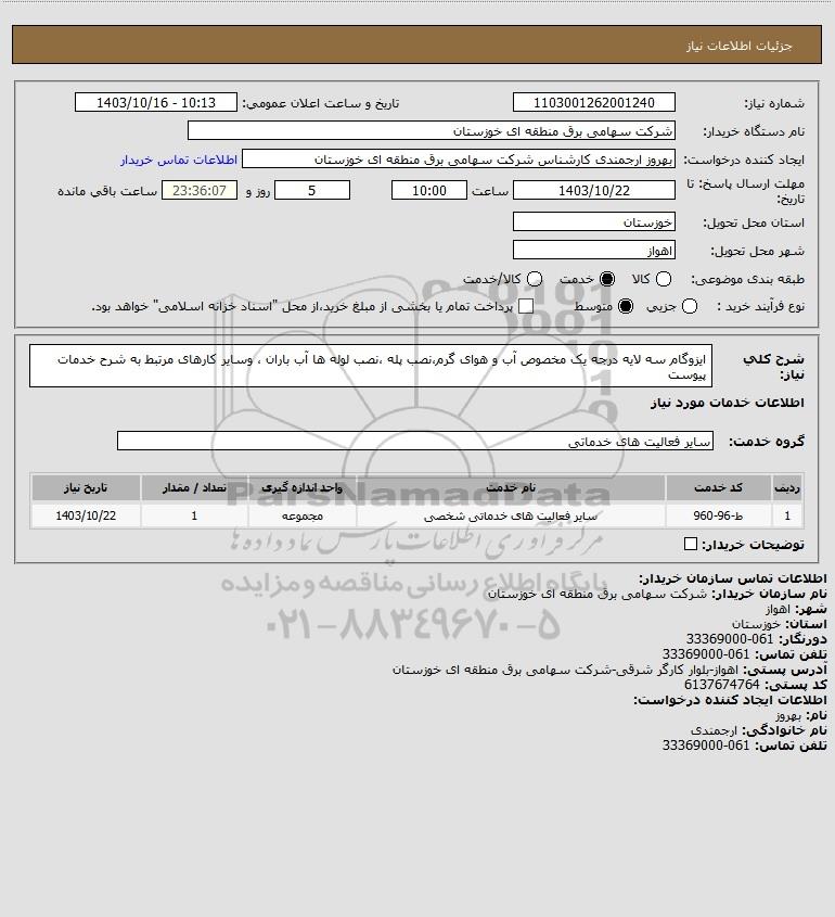نام سازمان خریدار: شرکت سهامی برق منطقه ای خوزستان