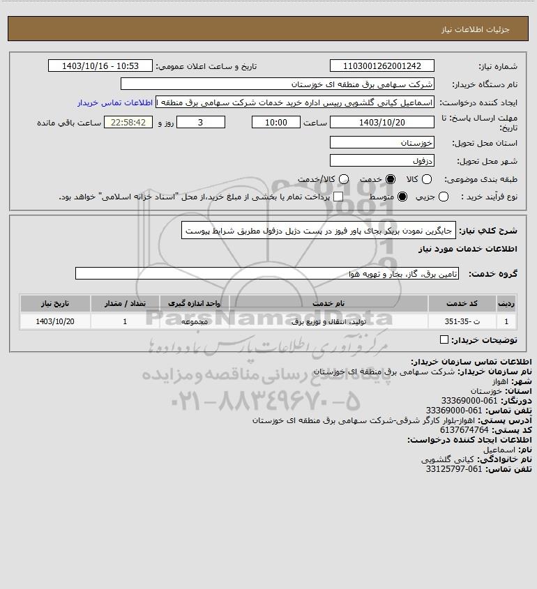 نام دستگاه خریدار:شرکت سهامی برق منطقه ای خوزستان