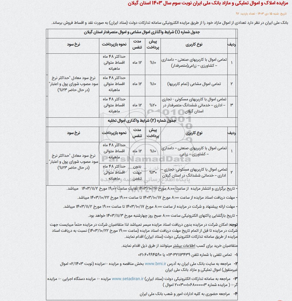 مزایده املاک و اموال تملیکی و مازاد بانک ملی ایران ؟