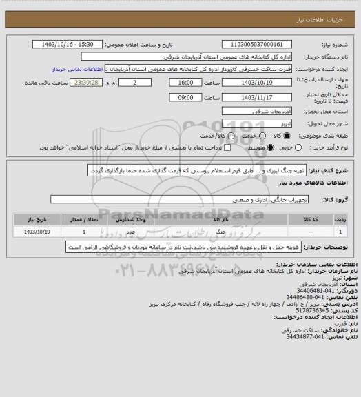 نام دستگاه خریدار:اداره کل کتابخانه های عمومی استان آذربایجان شرقی