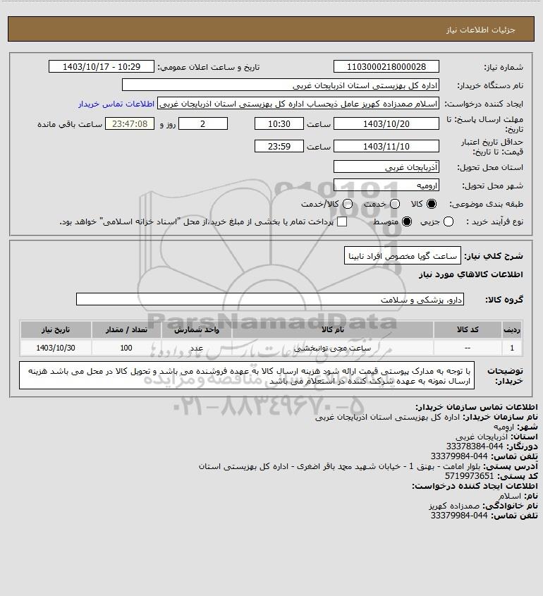 استعلام ساعت گویا مخصوص افراد نابینا, استعلام ساعت گویا مخصوص افراد نابینا