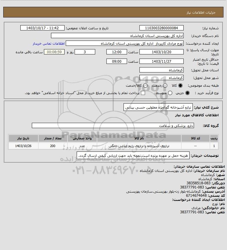 نام دستگاه خریدار:اداره کل بهزیستی استان کرمانشاه