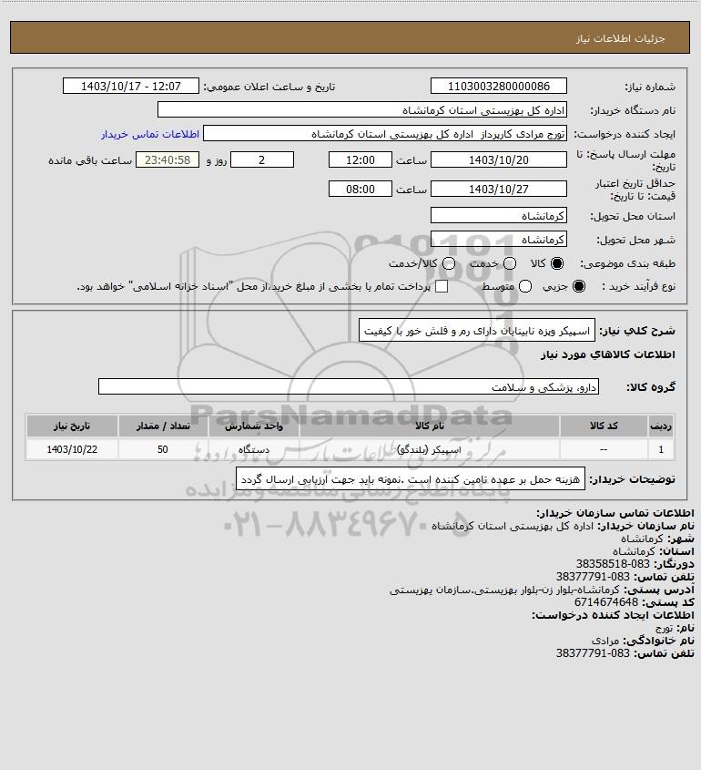 نام دستگاه خریدار:اداره کل بهزیستی استان کرمانشاه