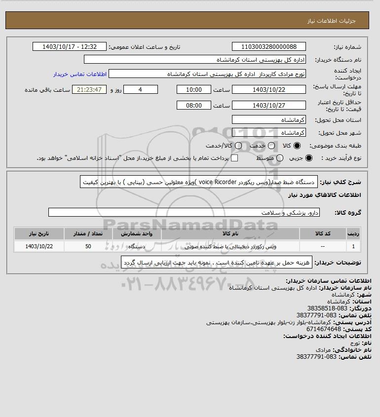 | 1 | -- | ویس رکوردر دیجیتالی یا ضبط کننده صوتی | دستگاه | 50 | 1403/10/22 |