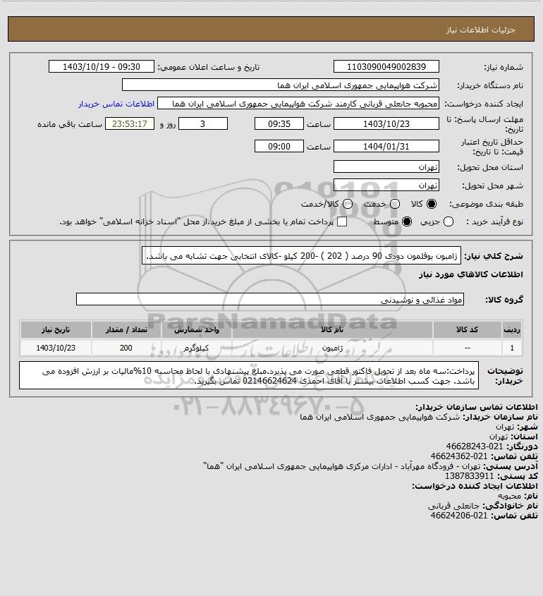 نام دستگاه خریدار:شرکت هواپیمایی جمهوری اسلامی ایران هما