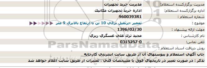 موضوع : تعمیر جرثقیل برقی 10 تن با ارتفاع بالابری 9 متر