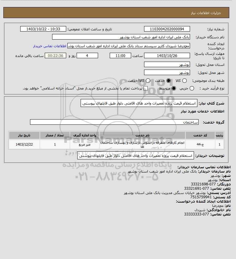 نام سازمان خریدار: بانک ملی ایران اداره امور شعب استان بوشهر