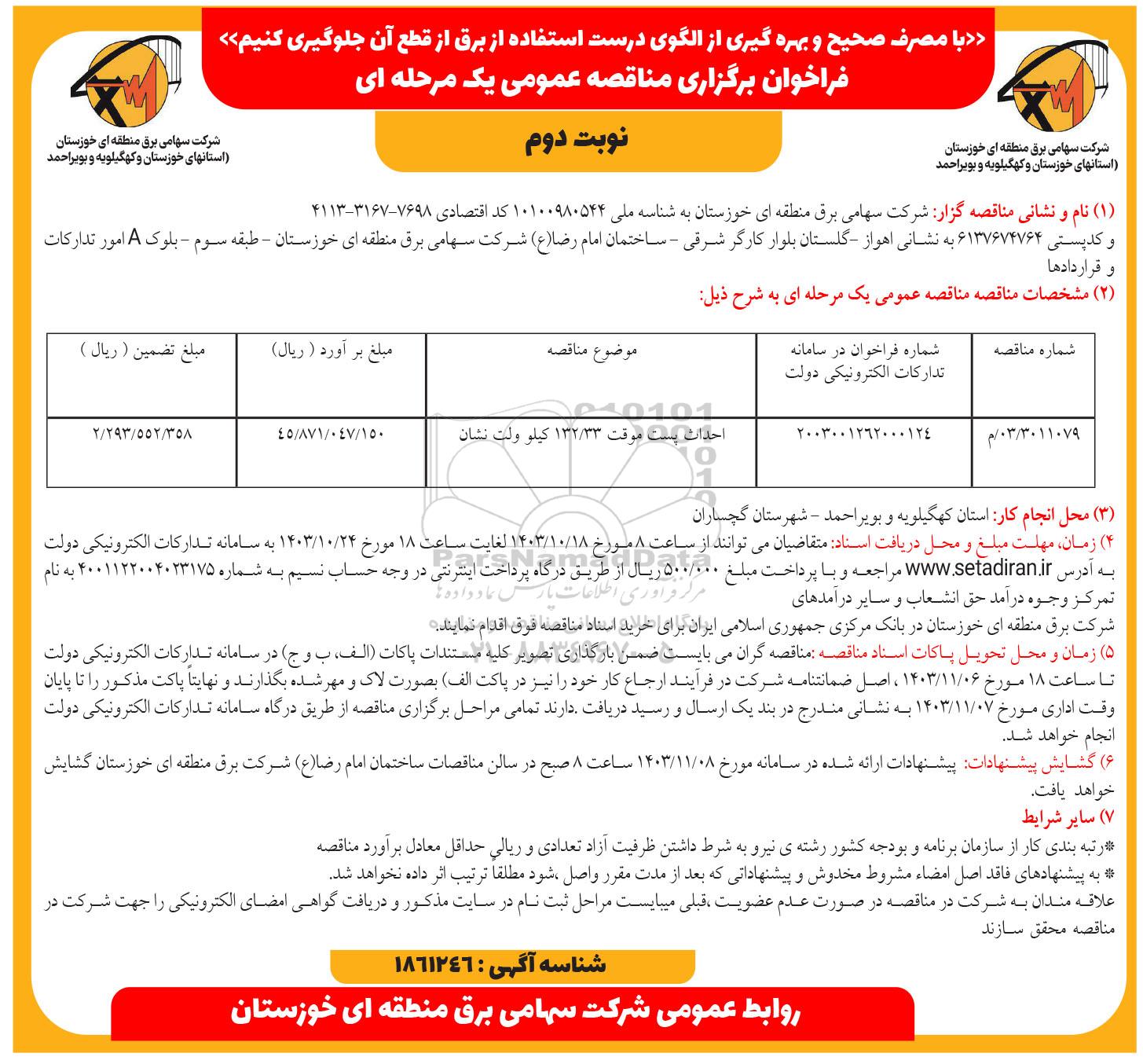 مناقصه احداث پست موقت 132/33 کیلوولت نوبت دوم , مناقصه احداث پست موقت 132/33 کیلوولت نوبت دوم