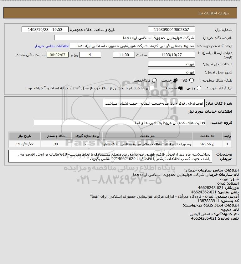 شرح کلی نیاز: تعمیرترولی فوکر - 30 عدد-خدمت انتخابی جهت تشابه میباشد.