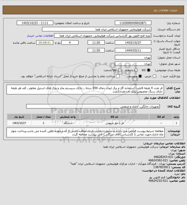 نام دستگاه خریدار:شرکت هواپیمایی جمهوری اسلامی ایران هما