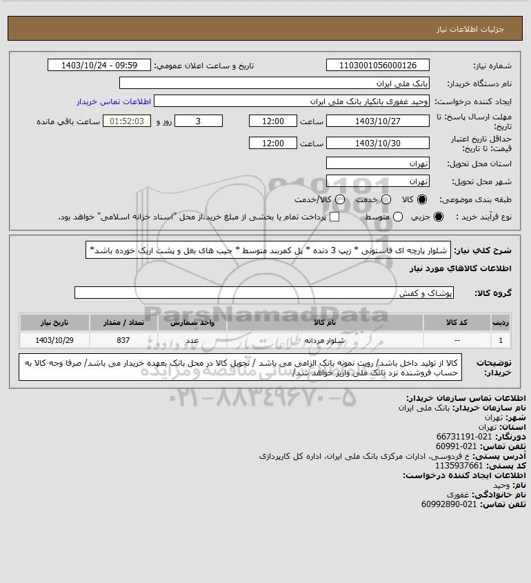 نام دستگاه خریدار:بانک ملی ایران