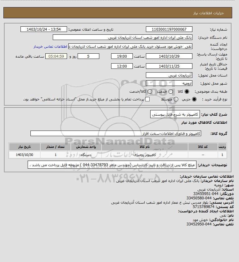 نام سازمان خریدار: بانک ملی ایران اداره امور شعب استان اذربایجان غربی