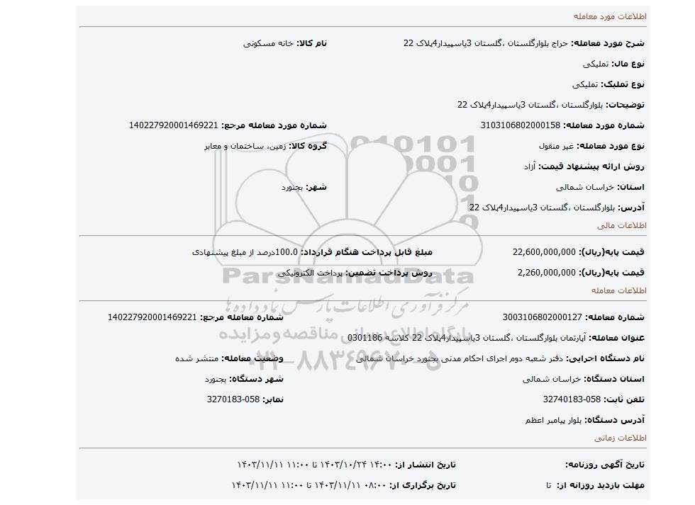 | شماره مورد معامله: 3103106802000158 | شماره مورد معامله مرجع: 140227920001469221 | |