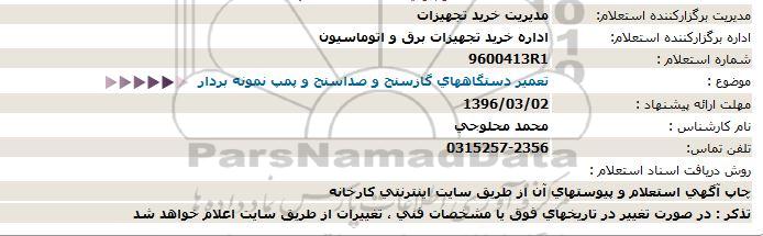 موضوع : تعمیر دستگاههای گازسنج و صداسنج و پمپ نمونه بردار