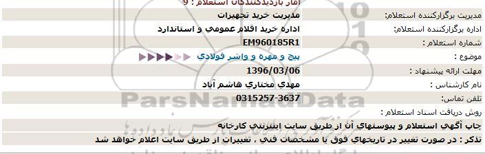 استعلام پیچ و مهره و واشر فولادی, استعلام پیچ و مهره و واشر فولادی