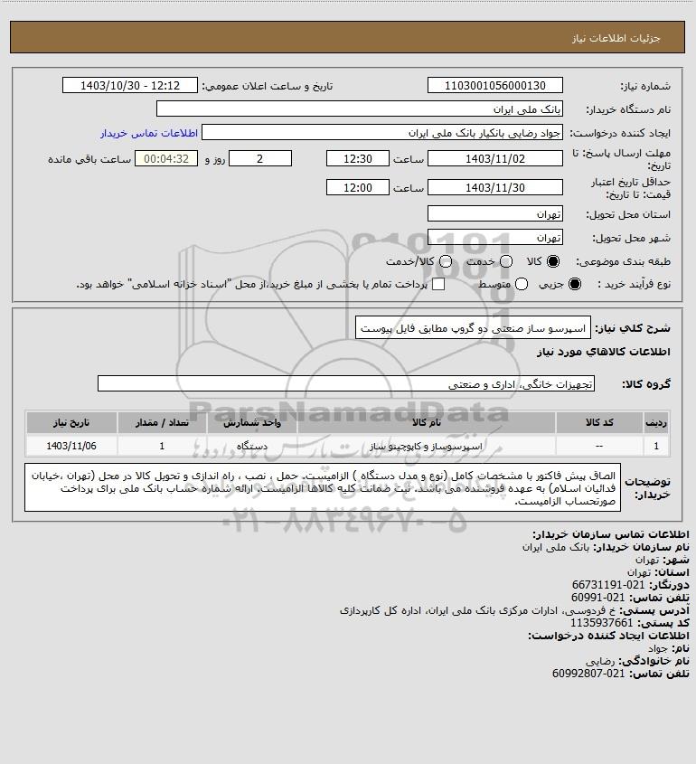 استعلام اسپرسو ساز صنعتی دو گروپ مطابق فایل پیوست, استعلام اسپرسو ساز صنعتی دو گروپ مطابق فایل پیوست
