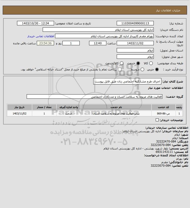 شرح کلی نیاز: اجرای طرح مشارکته اجتماعی زنان طبق فایل پیوست