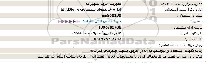 اداره برگزارکننده استعلام: اداره خریدمواد شیمیایی و روانکارها