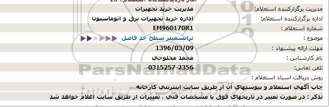 مناقصه ترانسفورماتور