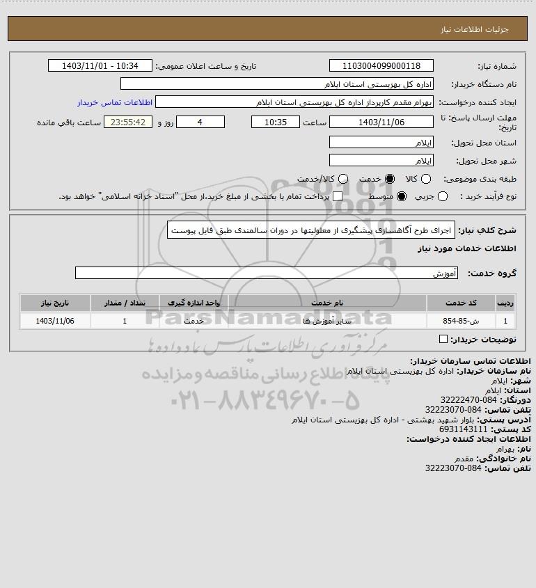 شرح کلی نیاز: اجرای طرح آگاهسازی پیشگیری از معلولیتها در دوران سالمندی طبق فایل پیوست