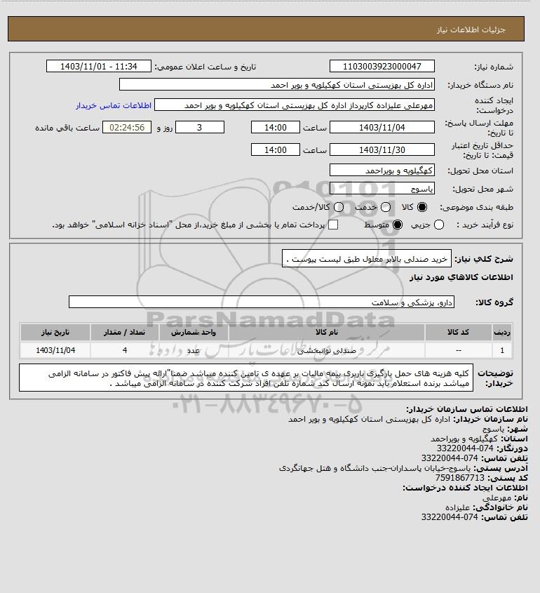 شماره نیاز: 1103003923000047