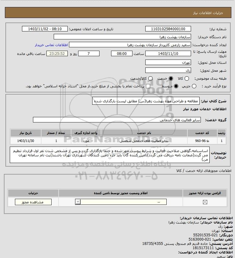 استعلام مطالعه و طراحی موزه بهشت زهرا(س) مطابق لیست بارگذاری شده, استعلام مطالعه و طراحی موزه بهشت زهرا(س) مطابق لیست بارگذاری شده