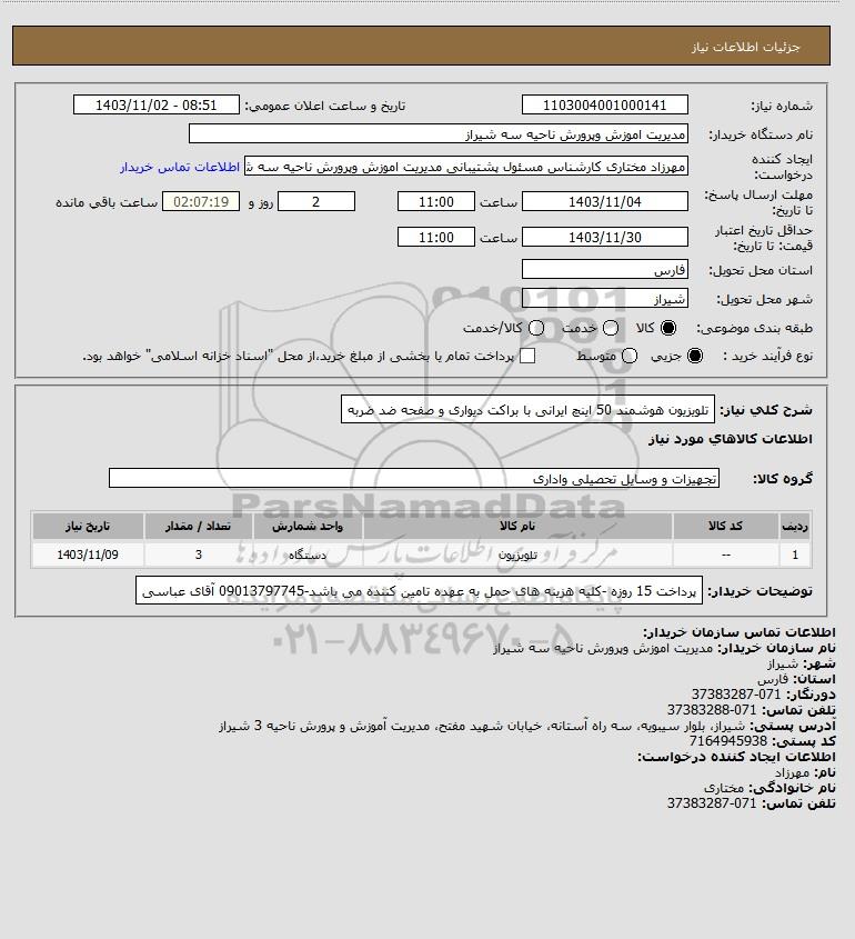 نام دستگاه خریدار:مدیریت اموزش وپرورش ناحیه سه شیراز