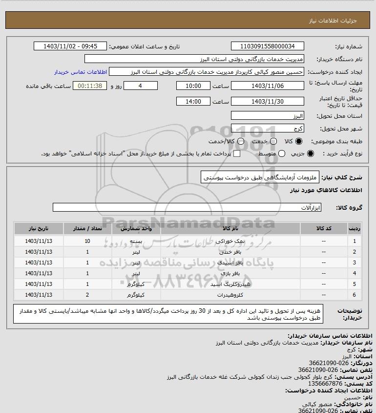 | 3 | -- | بافر اسیدی | لیتر | 1 | 1403/11/13 |