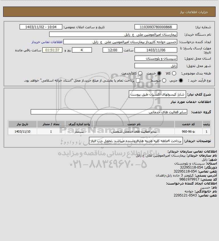 شرح کلی نیاز: شارژ کپسولهای اکسیژن طبق پیوست