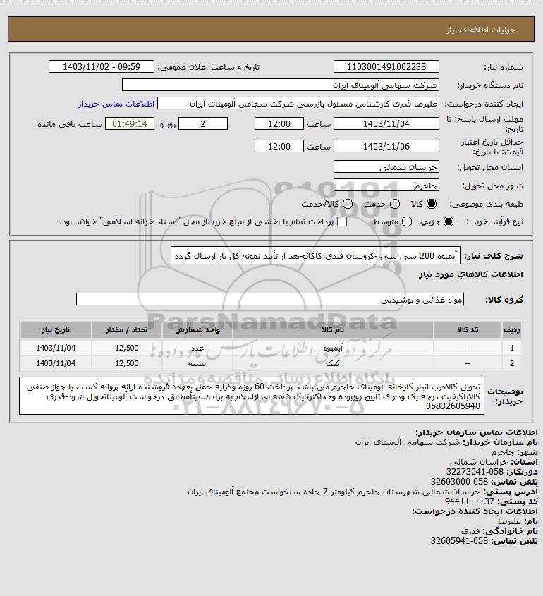 | 1 | -- | آبمیوه | عدد | 12,500 | 1403/11/04 |