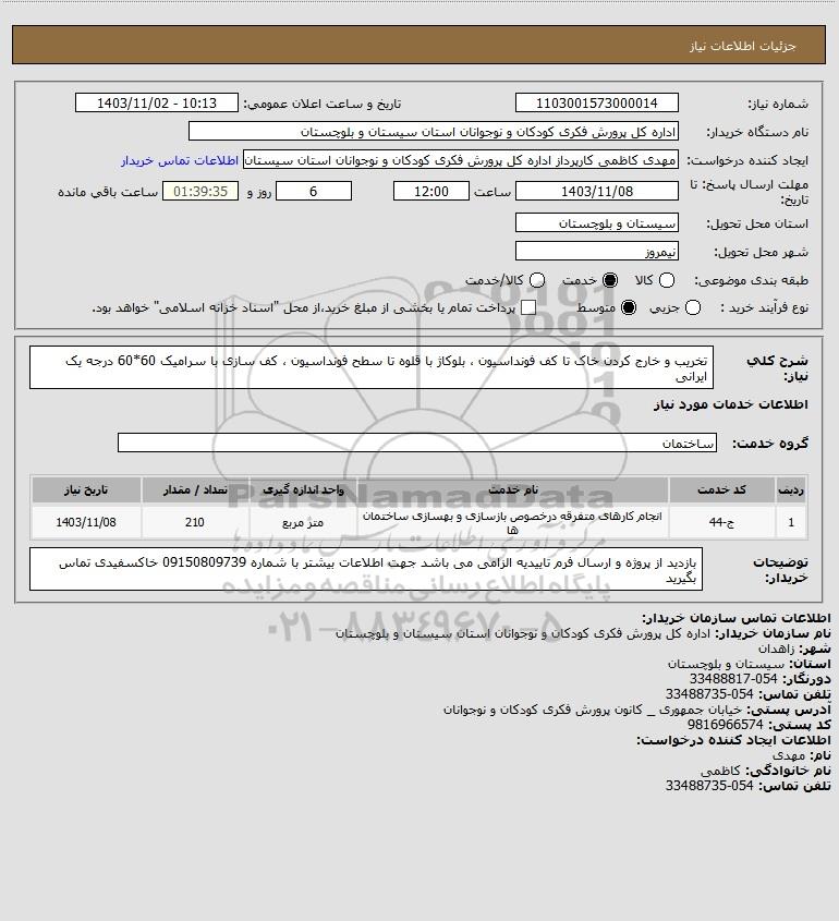 نام دستگاه خریدار:اداره کل پرورش فکری کودکان و نوجوانان استان سیستان و بلوچستان