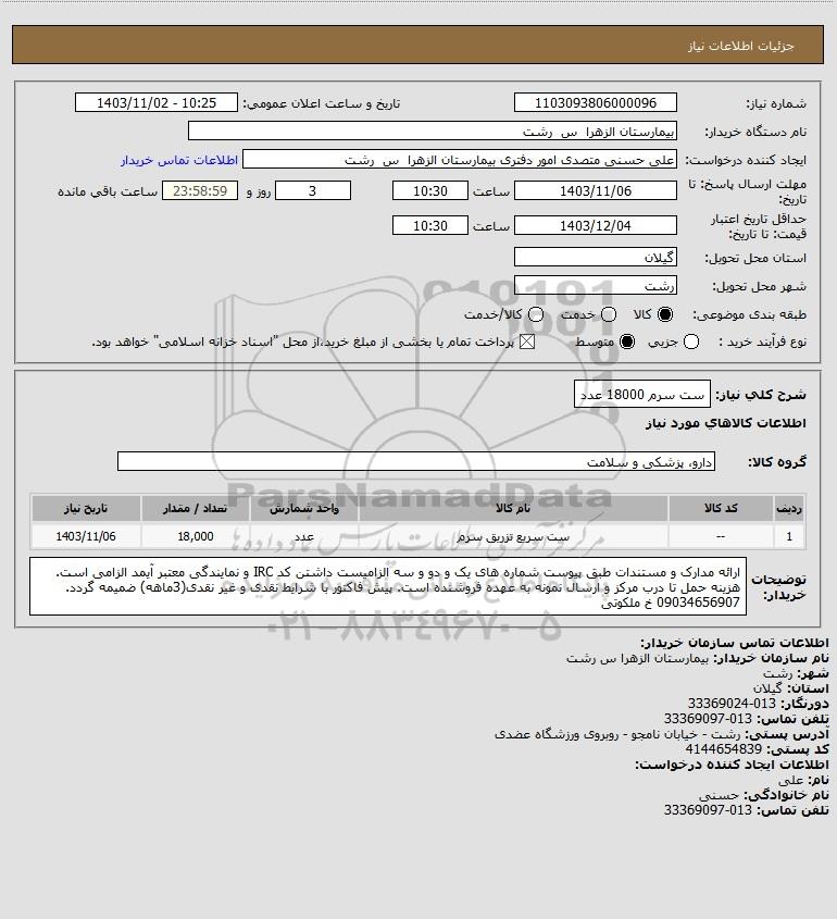 استعلام ست سرم 18000 عدد, استعلام ست سرم 18000 عدد
