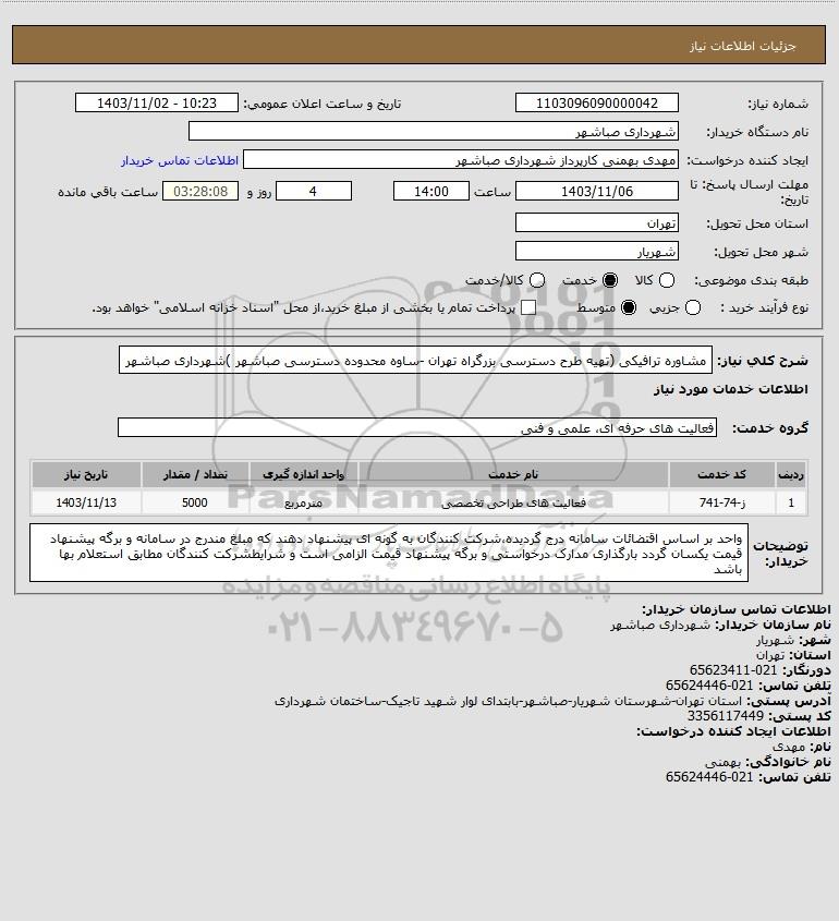 شرح کلی نیاز: مشاوره ترافیکی (تهیه طرح دسترسی بزرگراه تهران -ساوه محدوده دسترسی صباشهر )شهرداری صباشهر