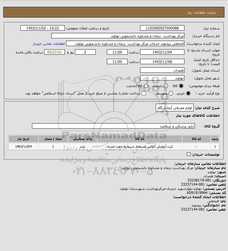نام سازمان خریدار: مرکز بهداشت درمان و مشاوره دانشجویی نهاوند