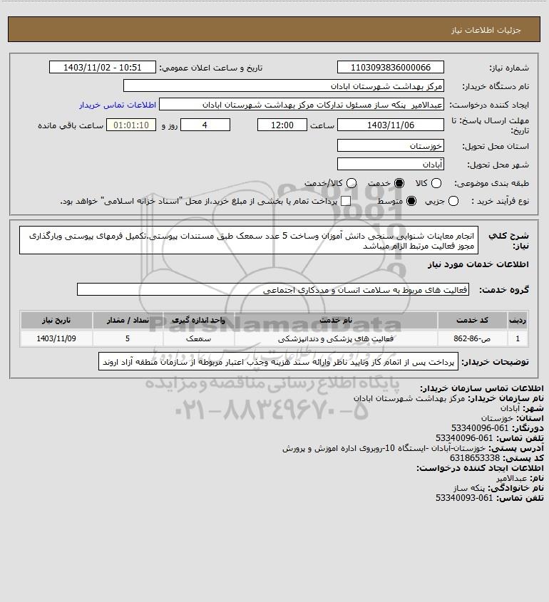 نام دستگاه خریدار:مرکز بهداشت شهرستان ابادان