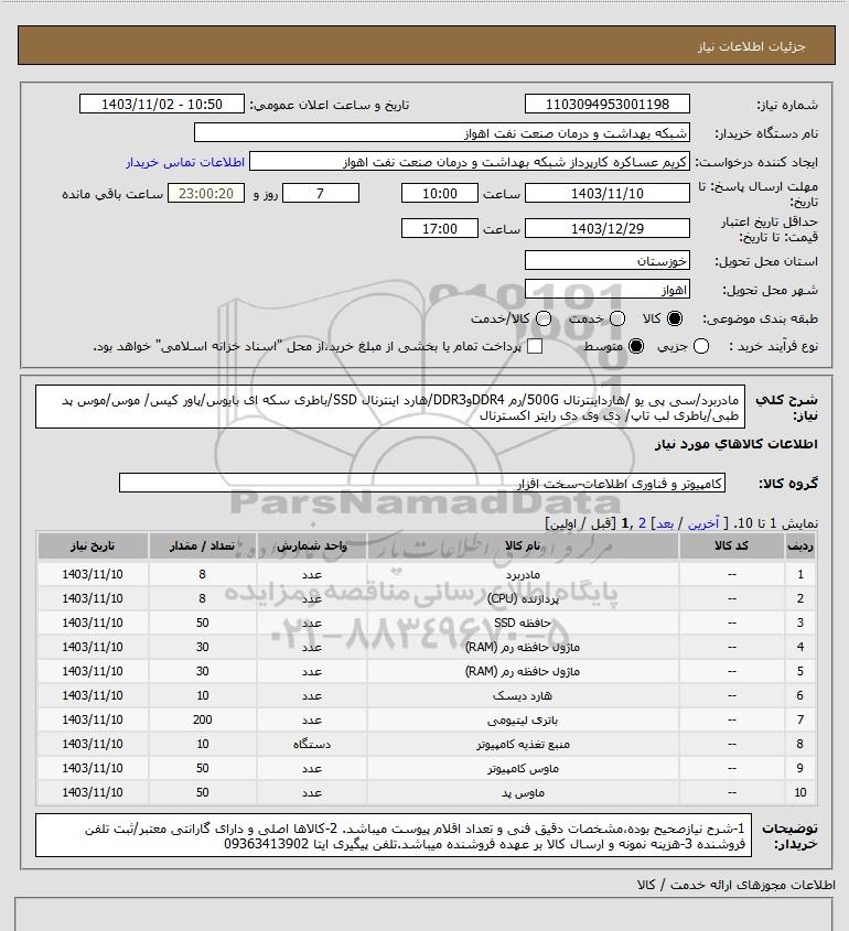 | 3 | -- | حافظه SSD | عدد | 50 | 1403/11/10 |