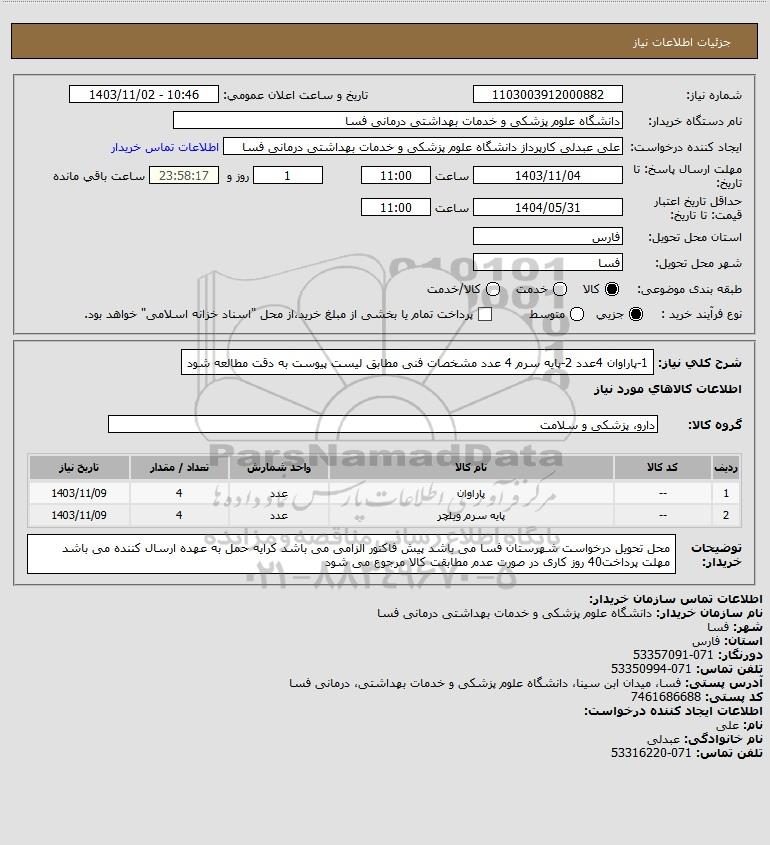نام دستگاه خریدار:دانشگاه علوم پزشکی و خدمات بهداشتی درمانی فسا