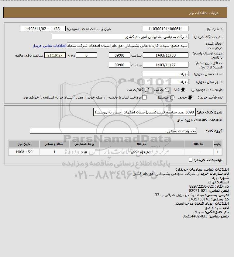 شرح کلی نیاز: 5890 عدد ساشه فستوکسین(استان اصفهان_اسناد به پیوست)