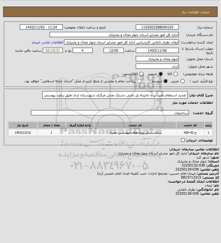 نام دستگاه خریدار:اداره کل امور عشایر استان چهار محال و بختیاری