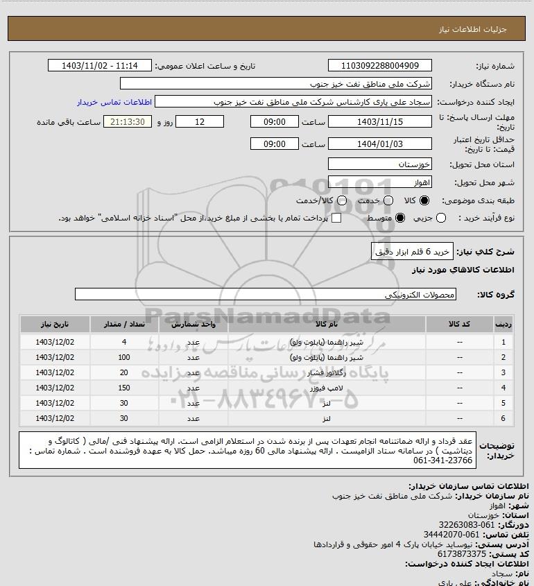 استعلام خرید 6 قلم ابزار دقیق, استعلام خرید 6 قلم ابزار دقیق
