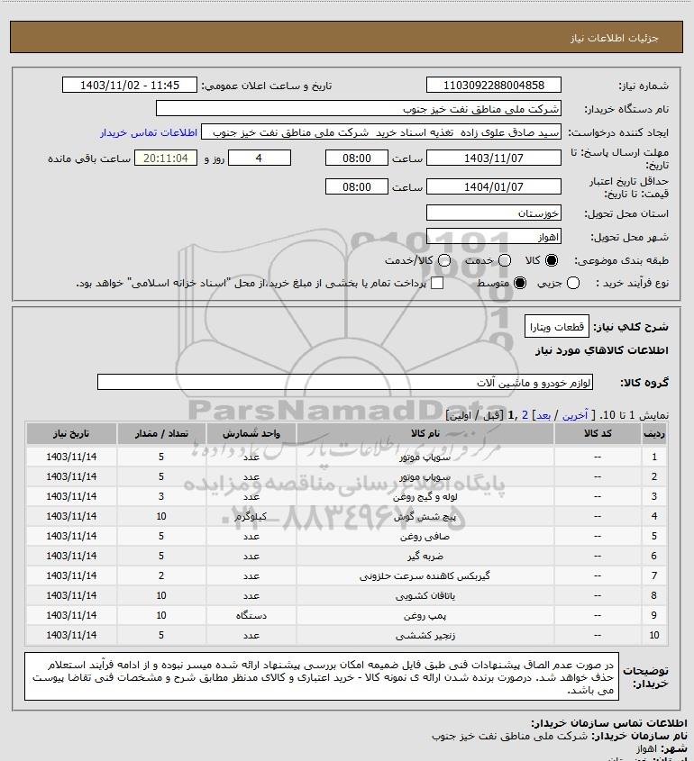 | 2 | -- | سوپاپ موتور | عدد | 5 | 1403/11/14 |