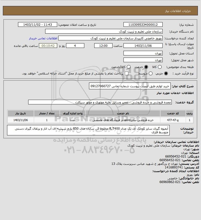 نام دستگاه خریدار:سازمان ملی تعلیم و تربیت کودک