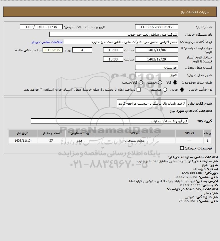 شرح کلی نیاز: 7 قلم رادیال بال بیرینگ