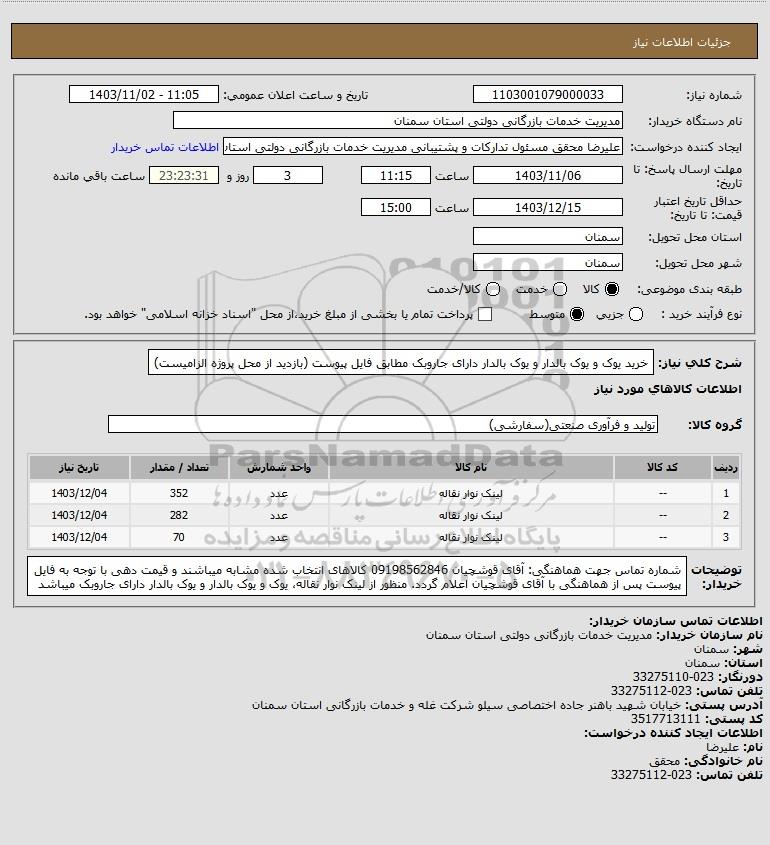 نام دستگاه خریدار:مدیریت خدمات بازرگانی دولتی استان سمنان
