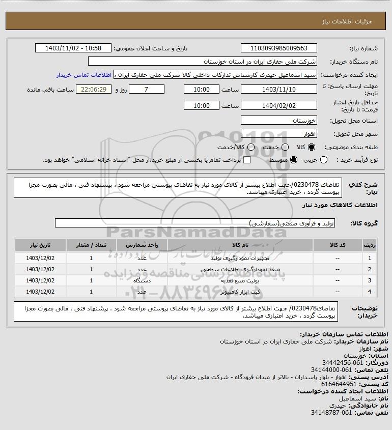 نام دستگاه خریدار:شرکت ملی حفاری ایران در استان خوزستان